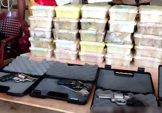 இதன்போது வீட்டிற்கு அருகில் பொலிஸாரால் மேற்கொள்ளப்பட்ட சோதனையில் மூன்று லொறிகளில் இருந்து ஐஸ் மற்றும் ஹெரோயின் போதைப்பொருட்கள் அடங்கிய 10 பொதிகள் மற்றும் 6 துப்பாக்கிகள் கைப்பற்றப்பட்டுள்ளன.
