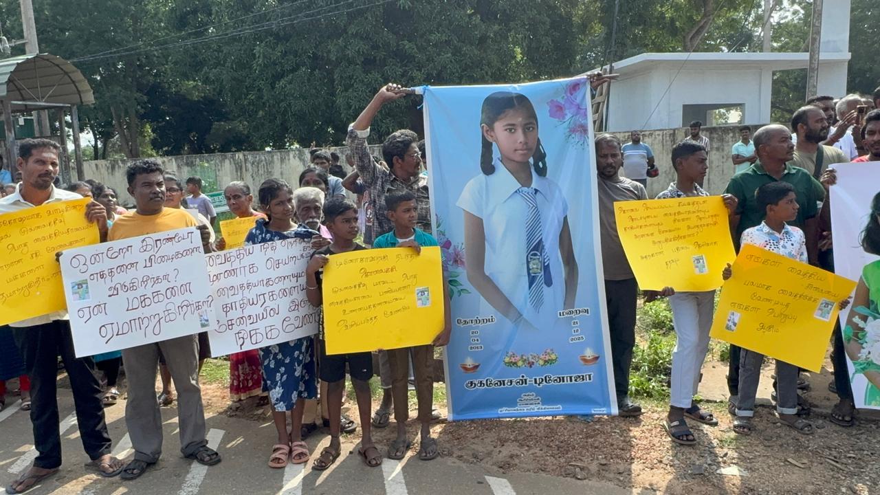 முல்லைத்தீவில் சிறுமியின் மரணத்திற்கு நீதிகோரி கவனயீர்ப்பு போராட்டம்
