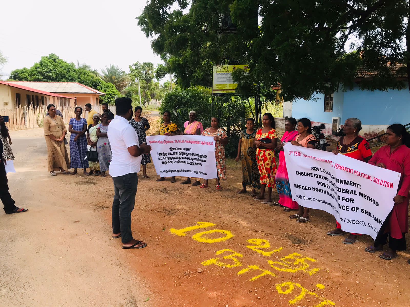 ஞாயிற்றுக்கிழமை கூடிய மக்கள் ஒருங்கிணைந்த வடக்கு கிழக்கு மாகாணத்திற்கு மீளப்பெற முடியாத அதிகார பகிர்வுடன் கூடிய சமஸ்டி முறையிலான அரசியல் தீர்வினை அரசிடம் வலியுறுத்தினர்.