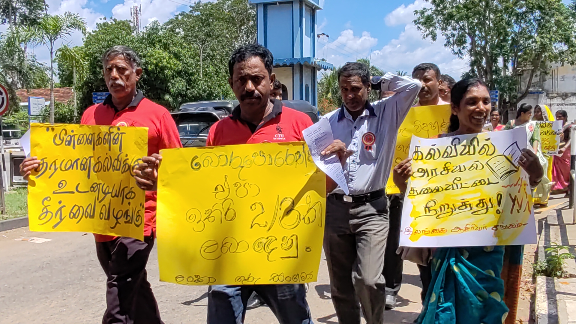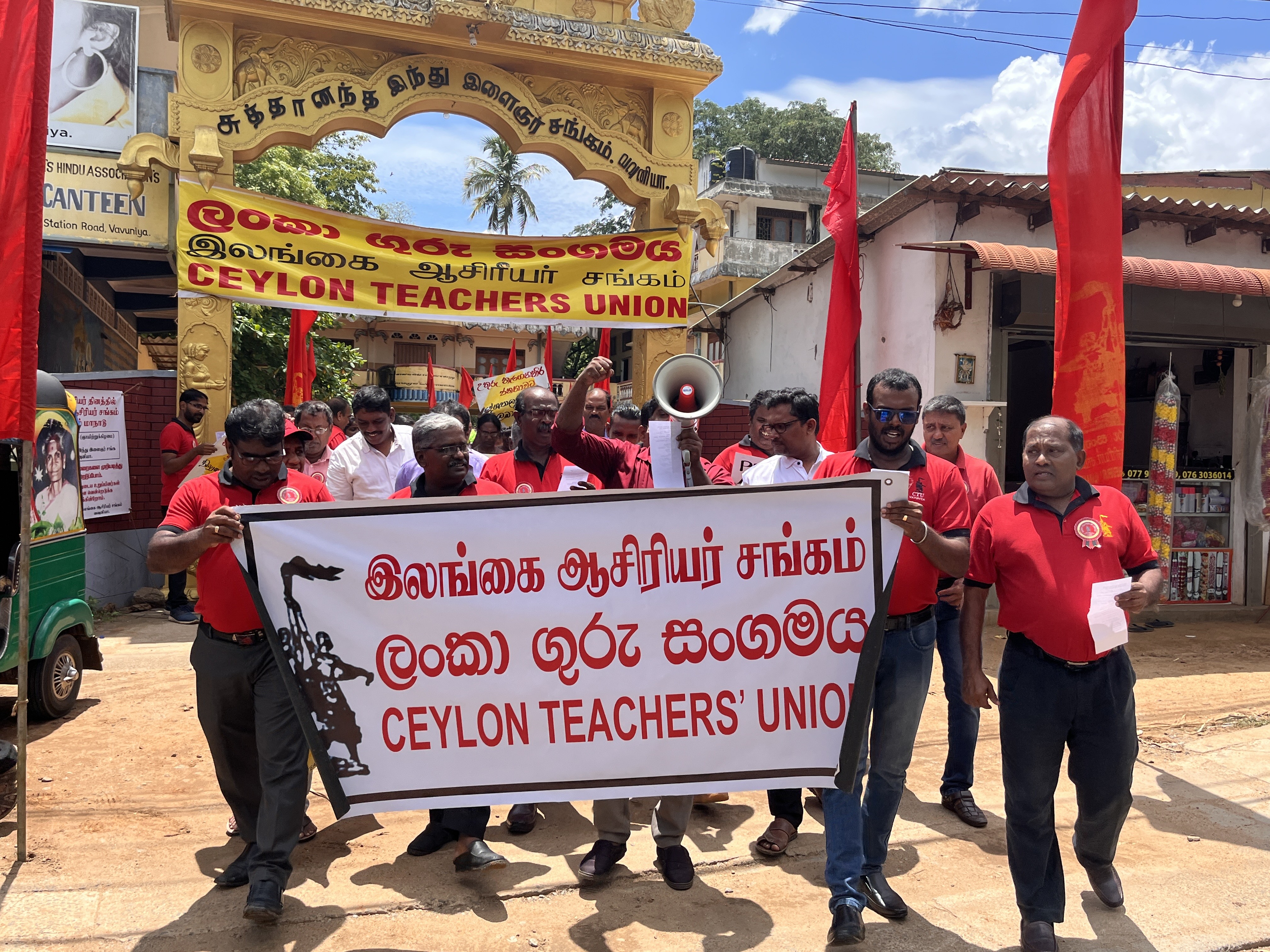 வவுனியாவில் பல்வேறுகோரிக்கைகளை வலியுறுத்தி இலங்கை ஆசிரியர்சங்கத்தினரால் ஞாயிற்றுக்கிழமை (05) ஆர்ப்பாட்ட பேரணி ஒன்று முன்னெடுக்கப்பட்டது.