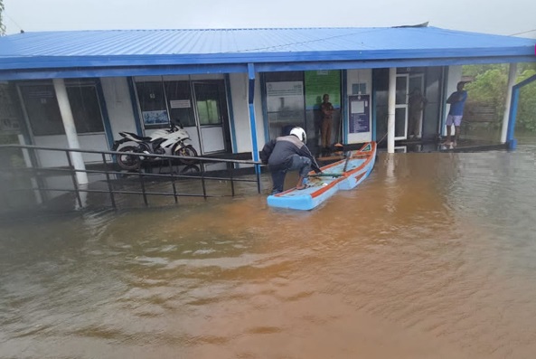 வெள்ள நீரை அகற்ற முடியாத நிலை காணப்படுவதுடன் தொடர்ச்சியாக மழையும் பெய்துவருவதால் பொலிசாரின் சேவைகளும் சிரமத்திற்குள்ளாகியுள்ளது.