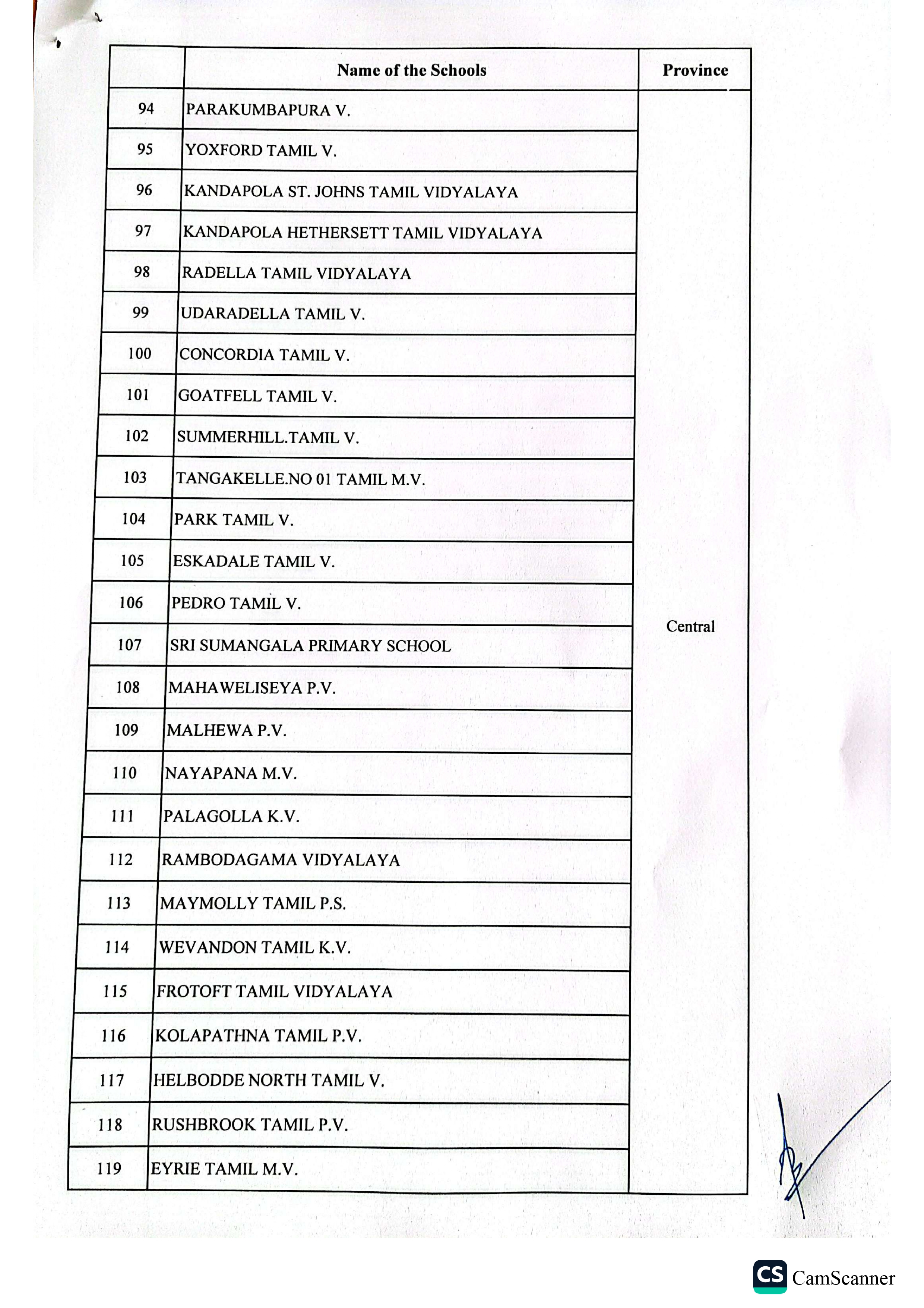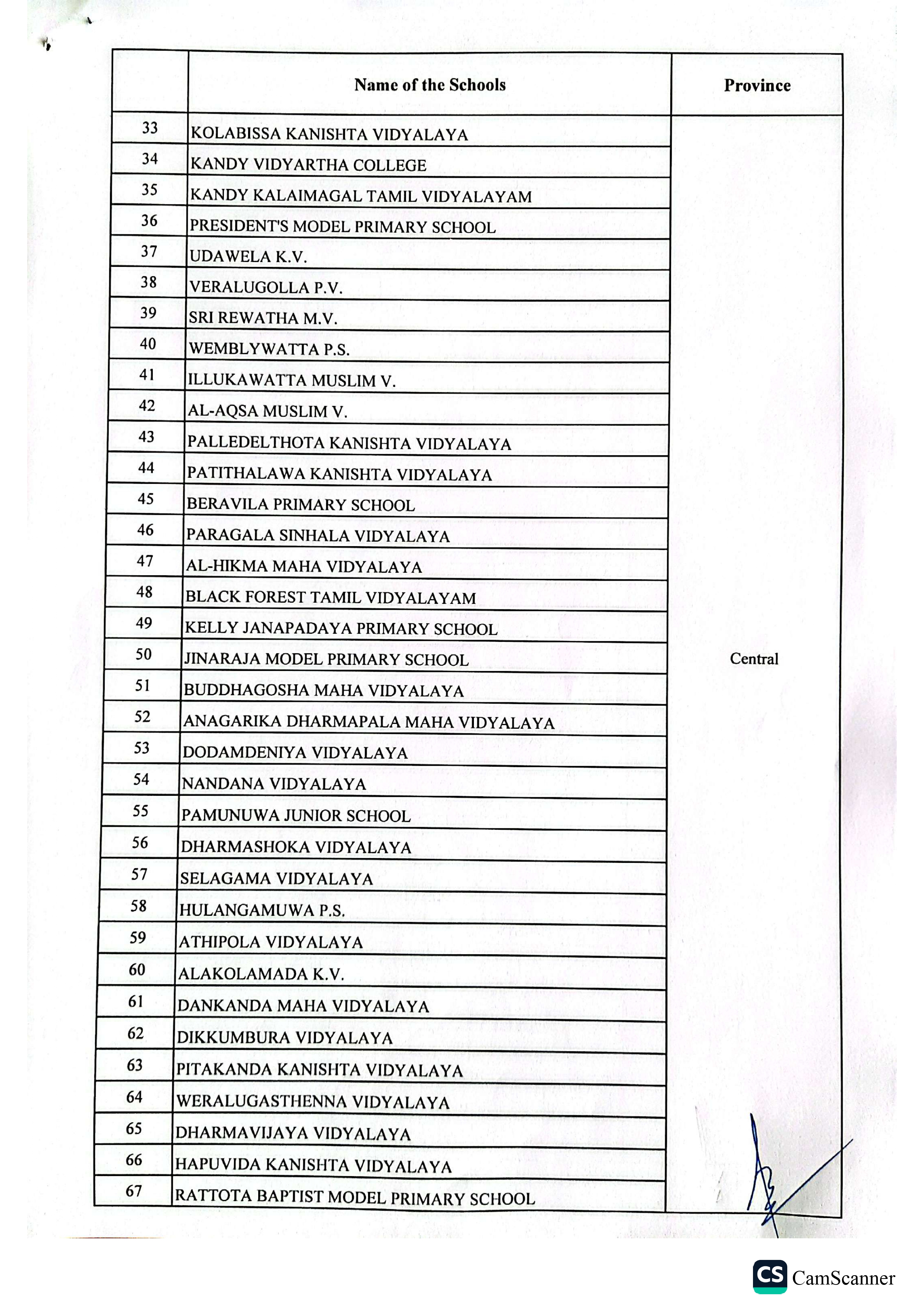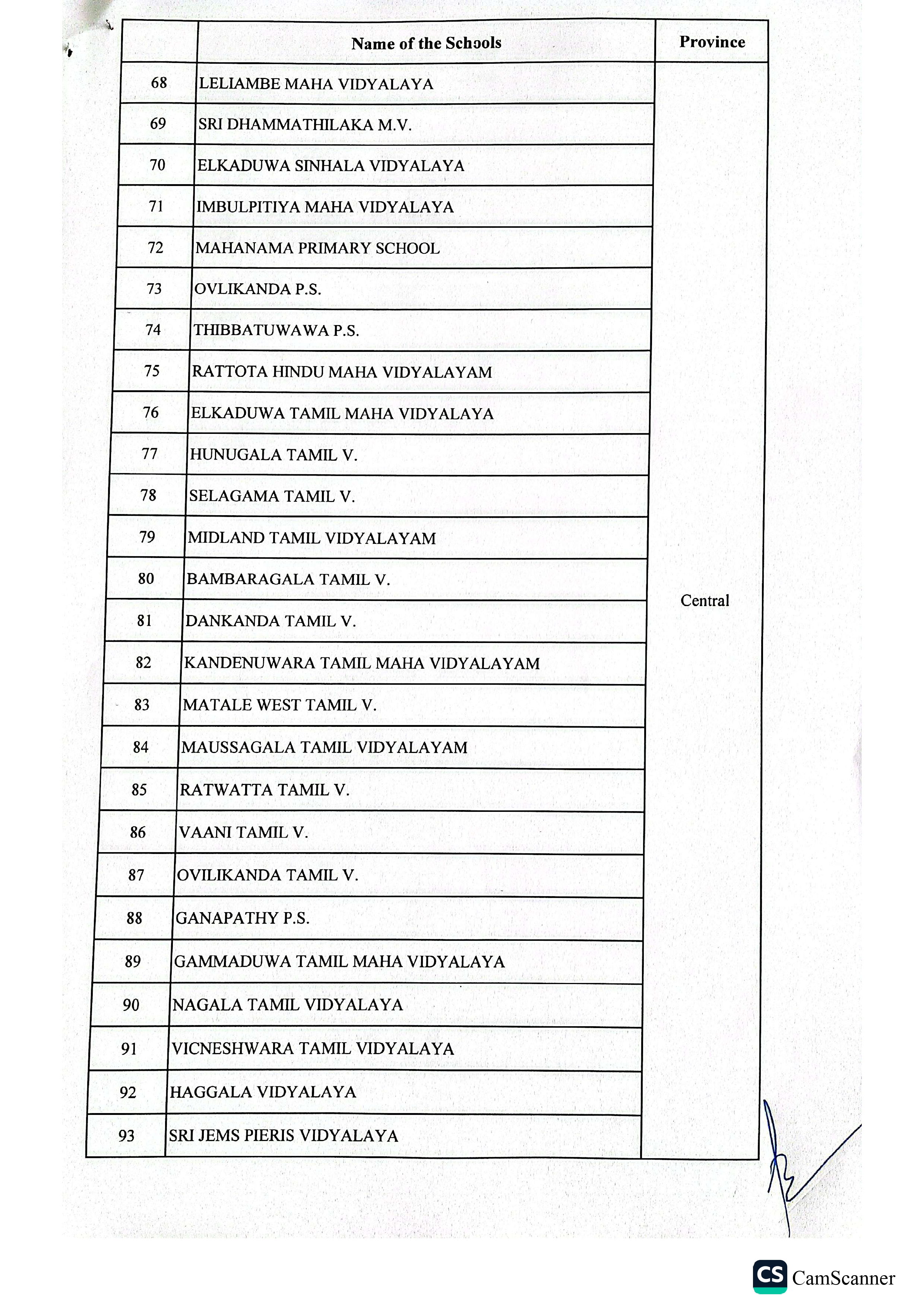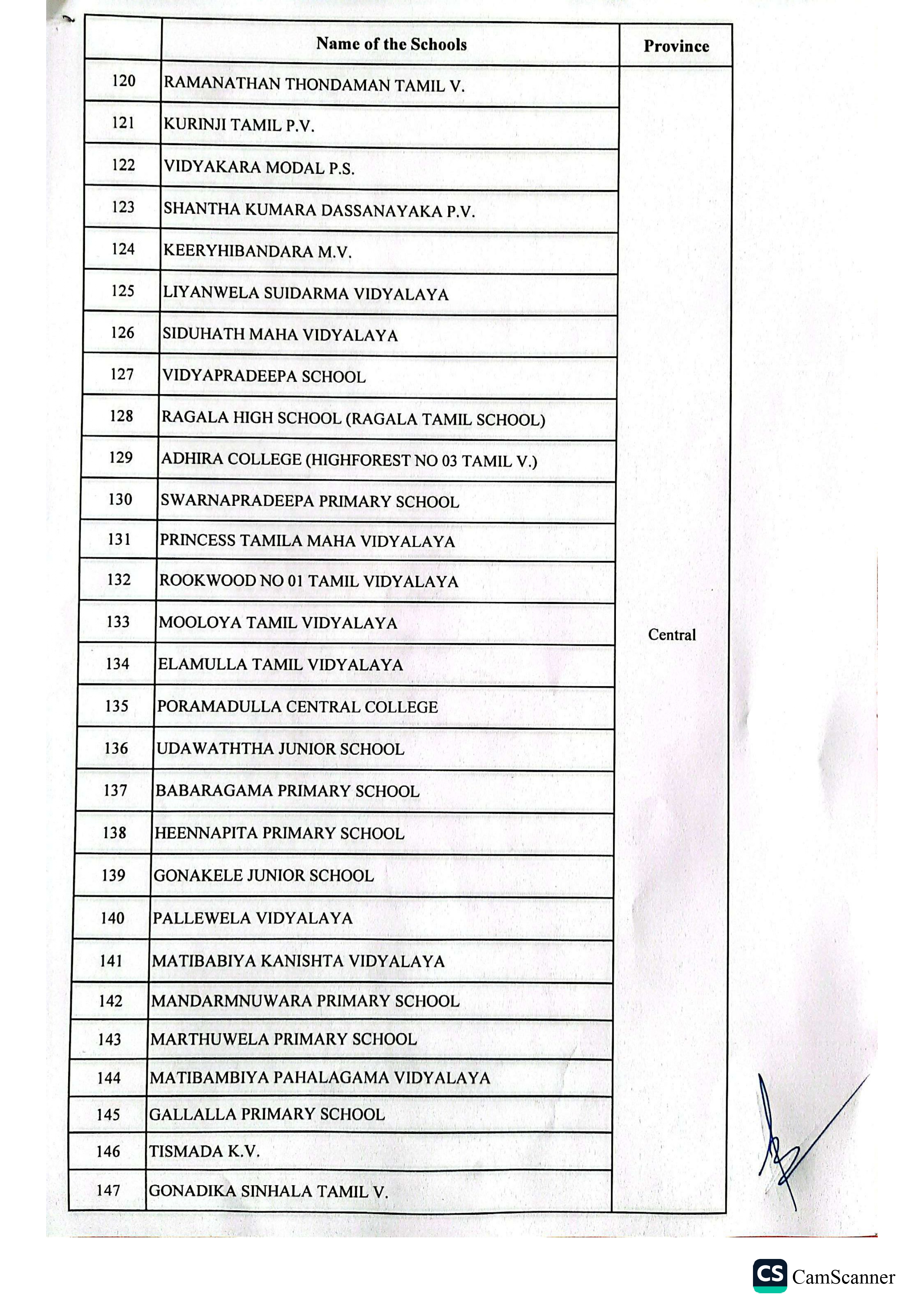 திறக்கப்படாத பாடசாலைகளின் விபரங்கள் பின்வருமாறு,
