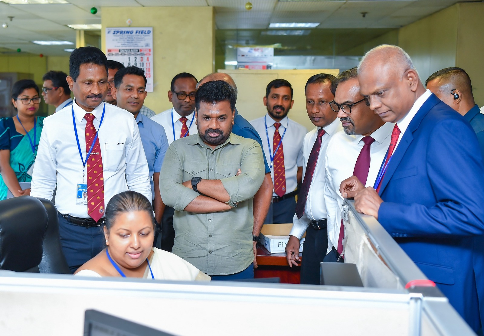 இலங்கை சுங்கத் திணைக்களம் 2025 ஆம் ஆண்டு பெற்றுக்கொண்ட முன்னேற்றம் மற்றும் 2026 ஆம் ஆண்டிற்கான புதிய திட்டம் தொடர்பில் ஆராய்வதற்காக இன்று காலை இலங்கை சுங்கத்திணைக்களத்திற்கு விஜயம் சென்ற ஜனாதிபதி, சுங்கப் பணிப்பாளர்கள் உள்ளிட்ட சிரேஷ்ட அதிகாரிகளுடன் கலந்துரையாடல் நடத்தினார்.