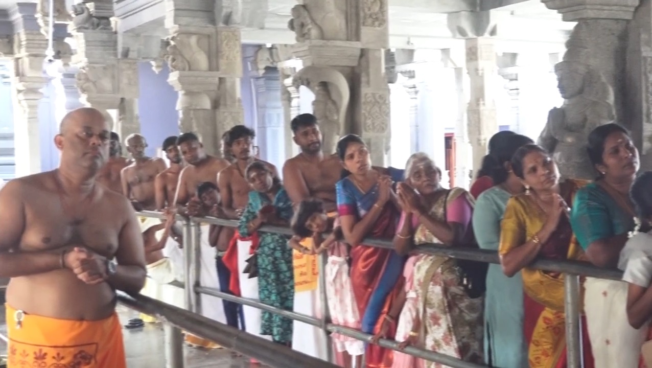 ஆலய தரிசனம் செய்தவர்கள் தங்களுக்குள் வாழ்த்துகளையும் பரிமாறிக்கொண்டனர்.