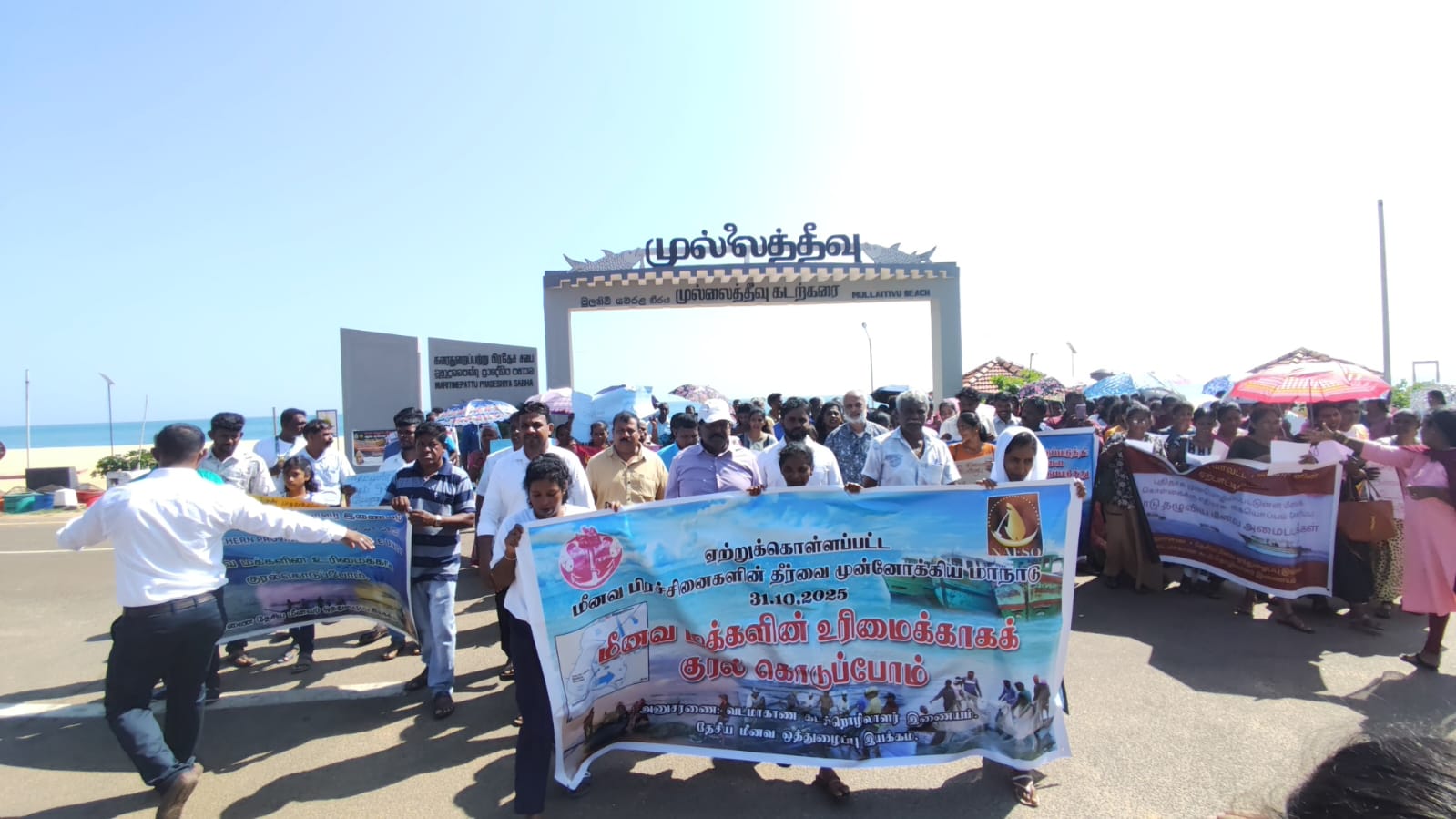 அந்த வகையில் முல்லைத்தீவு கடற்கரை வளாகத்திலிருந்து சட்டவிரோத கடற்றொழில் செயற்பாடுகள் மற்றும் இந்திய மீனவர்களின் அத்துமீறல் செயற்பாடுகள் உள்ளிட்ட மீனவ மக்களுக்கு பாதகமான விடயங்களை கட்டுப்படுத்தி பாரம்பரிய கடற்றொழிலாளர்களைப் பாதுகாப்பதுடன், கடல்வளத்தினையும் பாதுகாக்குமாறு வலியுறுத்தி ஆர்ப்பாட்டப் பேரணியொன்று வட மாகாண மீனவ மக்களால் முன்னெடுக்கப்பட்டது.