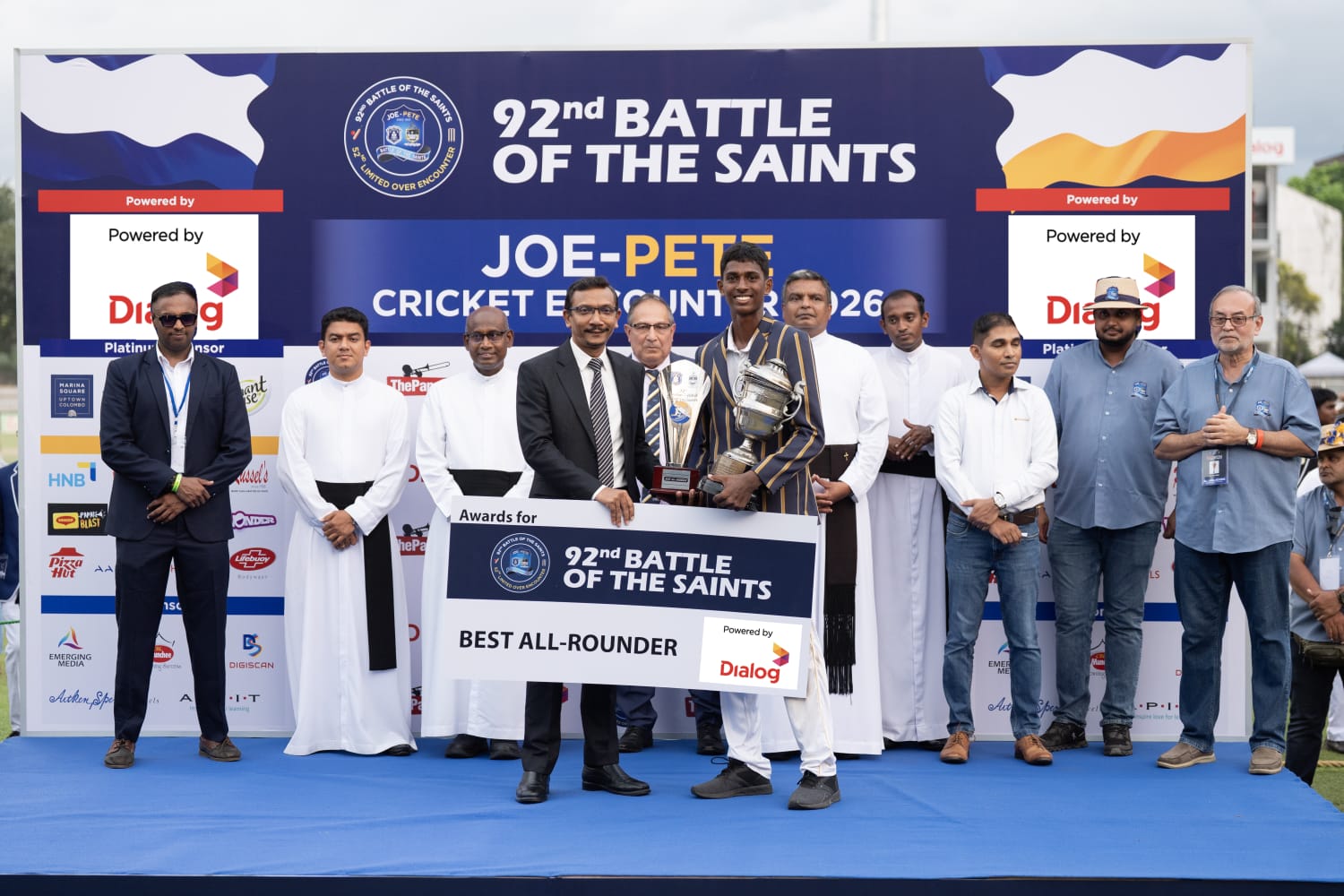 புனிதர்களின் சமருக்கு டயலொக் ஆசிஆட்டா பிரதான அனுசரணை வழங்கியதுடன் டயலொக் ஆசிஆட்டா பிஎல்சி குழுமத்தின் பிரதம சந்தைப்படுத்தல் அதிகாரி லசன்த தேவரப்பெரும விசேட அதிதியாகக் கலந்துகொண்டு சிறந்த சகலதுறை வீரராகத் தெரிவான புனித பேதுருவானவர் அணியைச் சேர்ந்த ஷவிது சில்வாவுக்கான விருதை வழங்கினார்.